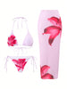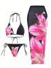 ZAFUL Womens 3pcs Swimsuit Floral Halter Triangle Bikini Top Tie Side Bottom with Long Sheer Cover Up Skirt-AMZ