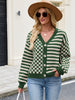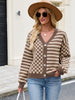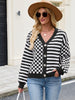 ZAFUL Women's Checkered Striped Cropped Cardigan Sweater Button Front Open Knitted Outerwear