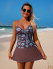 Women's Twist Tankini Sets Print High Waisted V Neck Two Pieces Swimsuit with Skirt