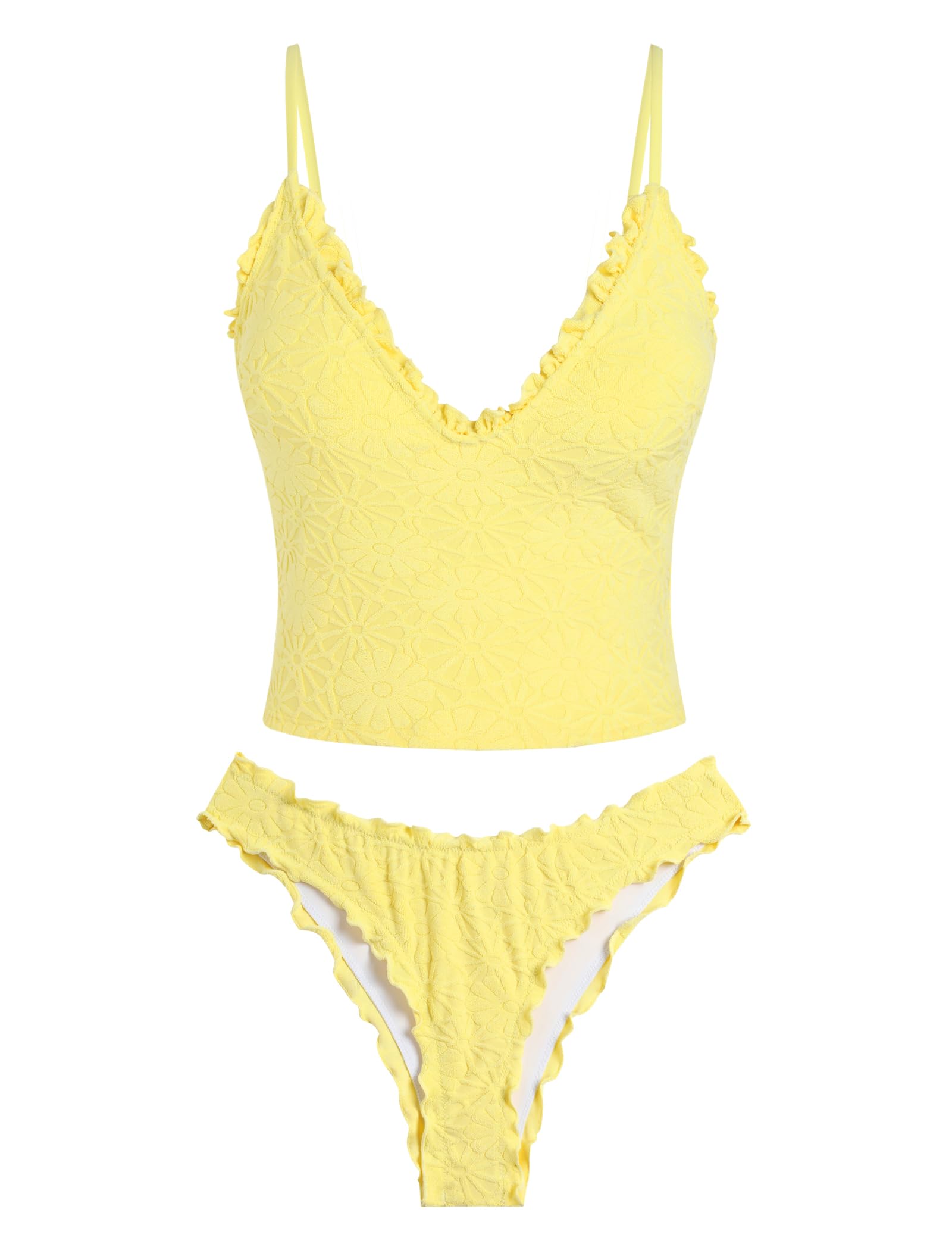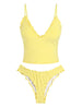 Zaful Boho Floral Print Halter Neck Tie Frill Takini Set-AMZ