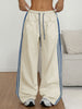 ZAFUL Women's Colorblock Straight Casual Pants Drawstring Slouchy Palazzo Pant Side Striped Lounge Trouser with Pockets-AMZ